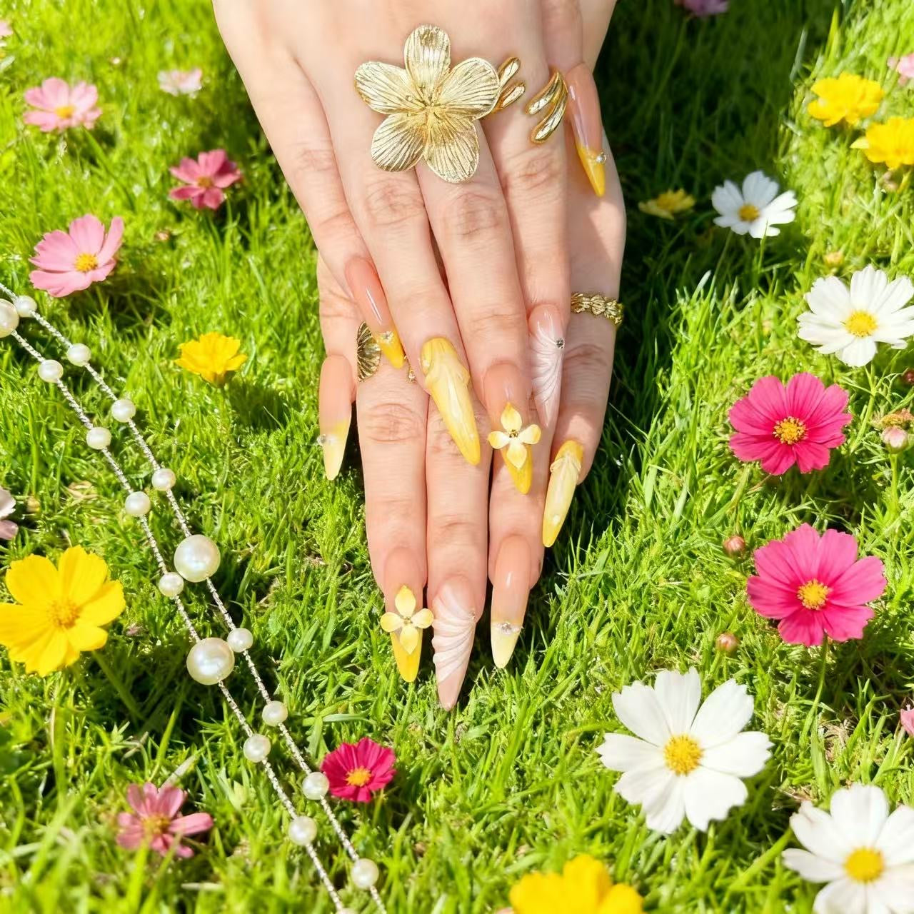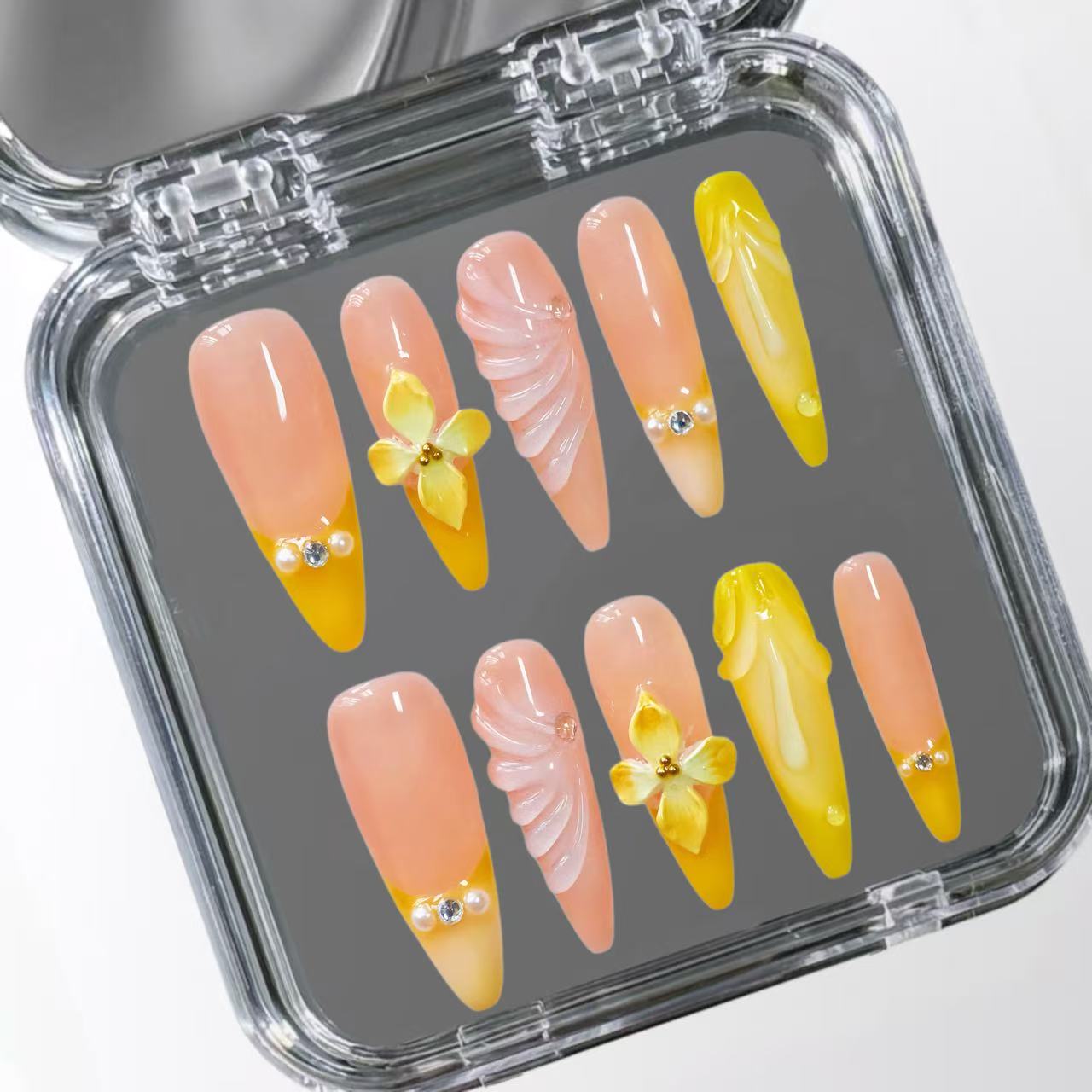 Sunlit Fantasia presents a delicate light yellow hue designed for press-on nails, perfectly suited for those seeking long-lasting elegance without compromising convenience. These long press-on nails offer an effortless application process, providing a natural yet vibrant finish that brightens your look with subtle warmth. Ideal for professional or everyday wear, Sunlit Fantasia ensures durability while maintaining a refined, expert-level appearance.